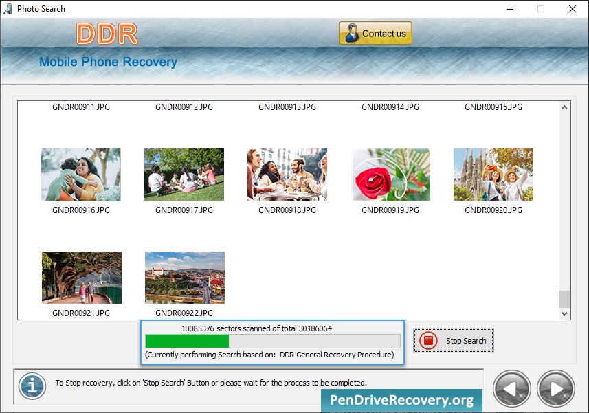 Mobile Phone Recovery Software Screenshots Select the drive from which you want to recover deleted data from the list of available Physical or Logical drive. Browse the location where recovered files will be saved by DDR - Mobile Phone Recovery. Here, you can see the current running status of file searching based on DDR Thorough Scanning Algorithm. Open containing folder to view recovered files. If you want to select another disk for recovery, click on 'Back' button.